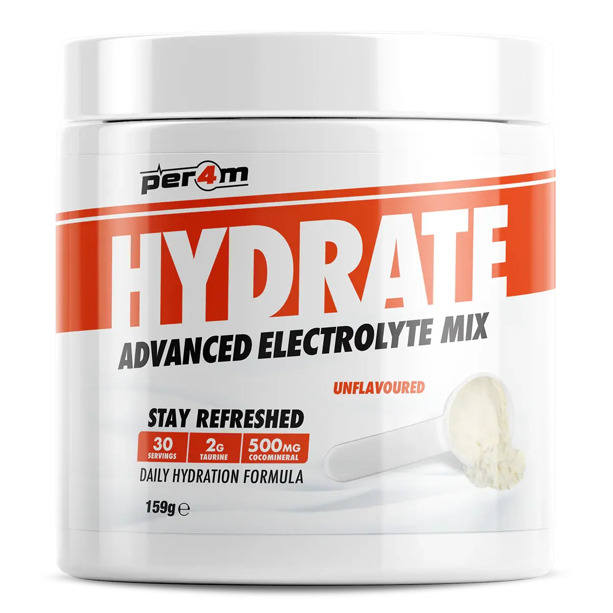 Per4m Hydrate is a premium electrolyte blend designed to quickly restore vital electrolytes lost through sweat, helping you stay fully hydrated all day.